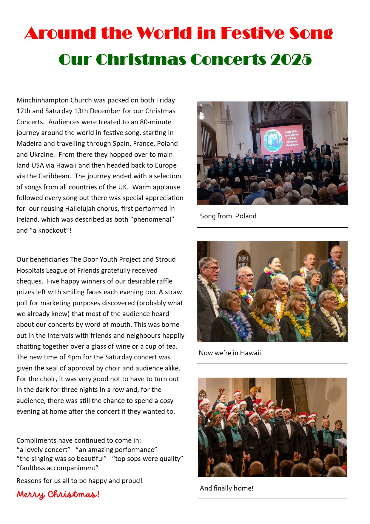 The Stuart Singers creates a newsletter periodically to keep our friends, supporters and followers up-to-date with the activities and events of the choir. It is delivered via our friends email mailing list.